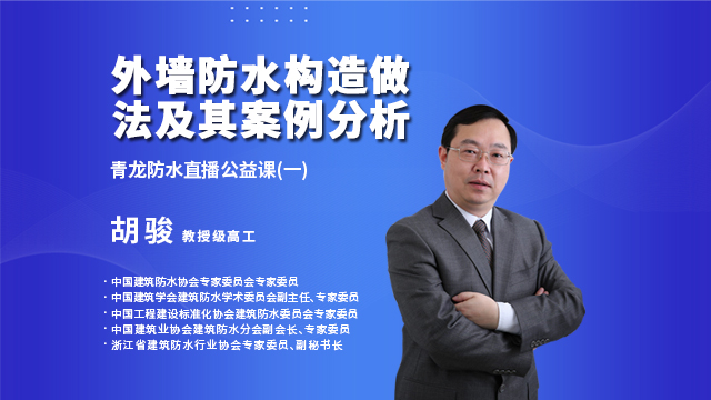 胡駿教授是資深的防水行業知名專家,他不僅擁有扎實的專業能力,并且都親身參與過多起國內重點防水工程,實戰能力過硬。今晚他將為大家帶來"外墻防水構造做法及其案例分析"的課題,從外墻構造形式、外墻防水構造做法等最基本的防水知識入手,幫助大家詳細了解外墻防水原理、使用材料和施工細節,最后以具體的案例分析介紹其中的成功得失,幫助我們在以后的防水補漏工程中規避那些不規范的做法。