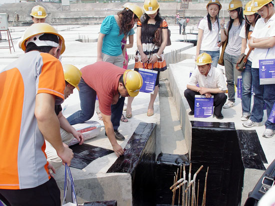 青龍公司自粘卷材預(yù)鋪反粘施工工藝的大量應(yīng)用,徹底顛覆了傳統(tǒng)材料直接施工于墊層的工藝。如番禺祈福新村,中山新中醫(yī)院的地下室防水工程,皆是采用預(yù)鋪反粘。在中醫(yī)院新址地下室施工過(guò)程中,我公司先后組織了開(kāi)發(fā)商、設(shè)計(jì)師、建筑單位等大批人員進(jìn)行現(xiàn)場(chǎng)觀摩學(xué)習(xí),了解這一先進(jìn)工藝,促進(jìn)預(yù)鋪反粘的進(jìn)一步推廣。