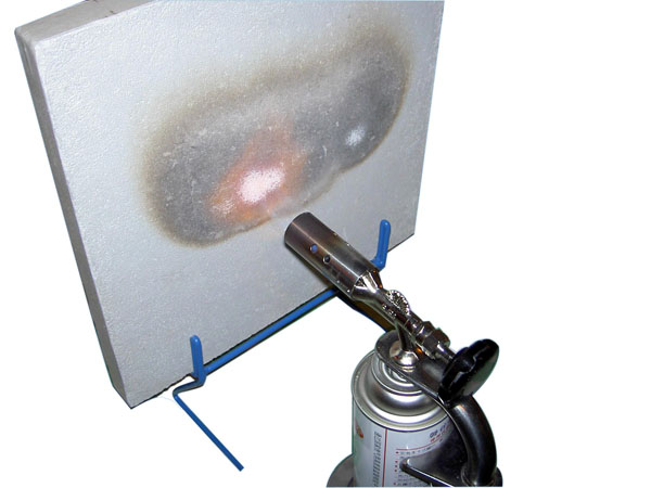 圖為電子點火噴槍對EVB保溫砂漿的局部燃燒實驗,