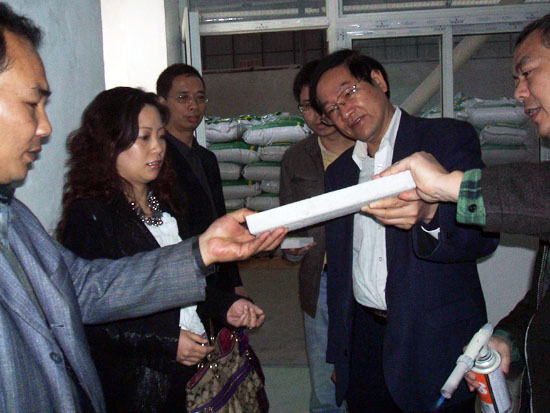 3月31日上午,南寧市科技局黨組副書記、副局長施居府,在青龍公司、科技局有關(guān)領(lǐng)導(dǎo)的陪同下,深入到我公司生產(chǎn)基地——廣西青龍化學(xué)建材有限公司(市隆安華僑經(jīng)濟(jì)開發(fā)區(qū)),就我公司的PVA-ECC高韌性纖維水泥基復(fù)合材料產(chǎn)品的研發(fā)與產(chǎn)業(yè)化項(xiàng)目進(jìn)行實(shí)地調(diào)研。