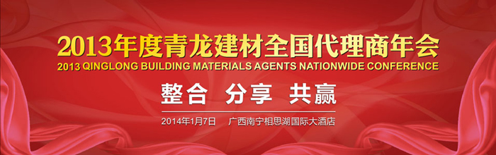 為了提高代理商的銷售積極性,促進(jìn)代理商之間的溝通和交流,增進(jìn)公司與代理商之間的感情,從而增強(qiáng)團(tuán)隊(duì)的凝聚力,提升渠道隊(duì)伍的戰(zhàn)斗力,青龍集團(tuán)將在2014年1月7日在廣西南寧(廣西分公司)舉辦2013年度會(huì)議。年會(huì)將圍繞防水行業(yè)“整合、分享、共贏”等方面展開(kāi),熱忱歡迎青龍集團(tuán)全國(guó)代理商及有志于在防水行業(yè)掘金致富的求富人士參加。