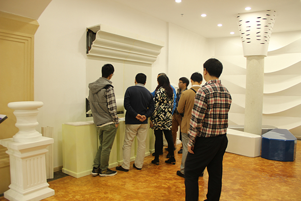 隨后,宋總帶領碧桂園集團客人參觀考察了青龍中山新辦公大樓。當參觀到grc展廳時,琳瑯滿目、細膩精致的grc構件讓客人大開眼界,大為贊賞,咨詢grc設計、制作工藝、安裝及合作方式。宋總一一耐心解答。考察團表示,回去之后,一定要重點商議與青龍grc合作事宜,讓碧桂園的樓盤用上更加美麗,更加安全的青龍grc構件。
