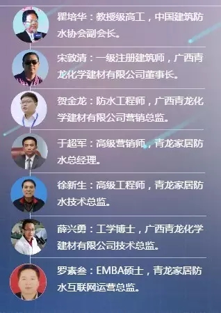 發布會上,防水行業多位為人熟知的專家、大咖和行業精英,將會蒞臨現場,為大家解讀家居防水行業現狀及趨勢、家居防水新零售商業模式、家居防水互聯網策略等重大課題,為廣大防水人士答疑解惑。一定會讓大家收獲滿滿,稇載而歸!