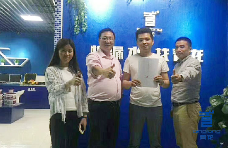 2018年4月11日下午,來自廣東韶關的黃老板經過對青龍中山公司的實地考察后,當機立斷正式簽約加入到青龍家裝防水陣營,從而將機會緊緊抓住在自己手中。
