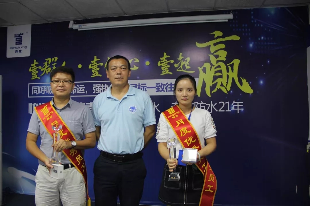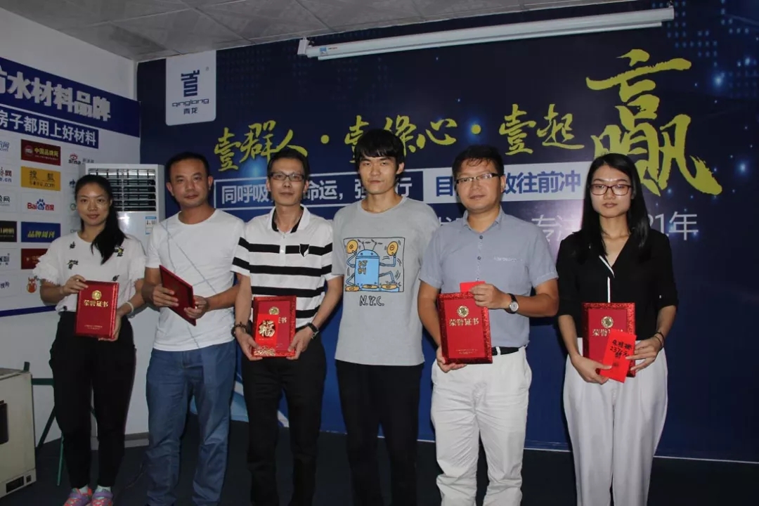 青龍公司董事長(zhǎng)宋敦清、營(yíng)銷總監(jiān)賀金龍、家裝防水事業(yè)部總經(jīng)理于超軍、質(zhì)量總監(jiān)張科、行政經(jīng)理廉金利以及家裝事業(yè)部全體同仁,工裝防水營(yíng)銷中心、電商部部分人員共四十余人參加了表彰。