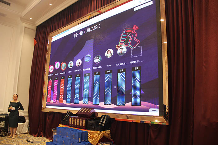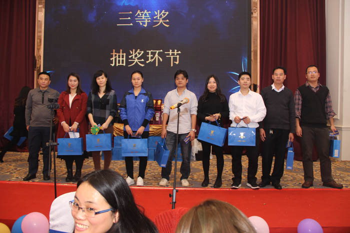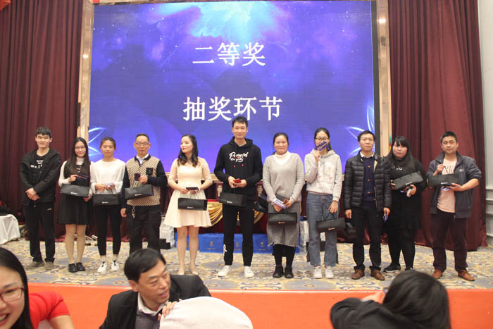 除了精彩的文藝節目,更讓人充滿期待的當然是晚會標配的抽獎啦!今年公司為大家準備了微信搖一搖、精美實物獎勵、微信紅包和現金紅包等等多項多種大獎,主持人每一次的報獎都讓大家小心臟撲通撲通的跳,充滿希望,中獎者喜不自勝!一輪又一輪大獎也將年會推向高潮,大家都非常的興奮,歡快!