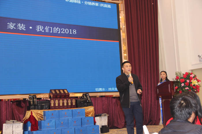 青龍家裝防水事業營銷總監于超軍作《家裝,我的2018》總結報告,簡要分析了2018年青龍家裝防水市場開發情況及存在的問題,對2019年的重要工作作了部署,召開大家同心同德,再創輝煌!