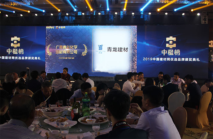大會還對住宅內裝產業各類別企業進行了表彰和頒獎,將大會推向了高潮 ,青龍建材憑借品牌實力和市場影響力成功榮獲防水材料影響力品牌獎,展現了行業專家、業界同行和市場對青龍公司的肯定和認同 。
