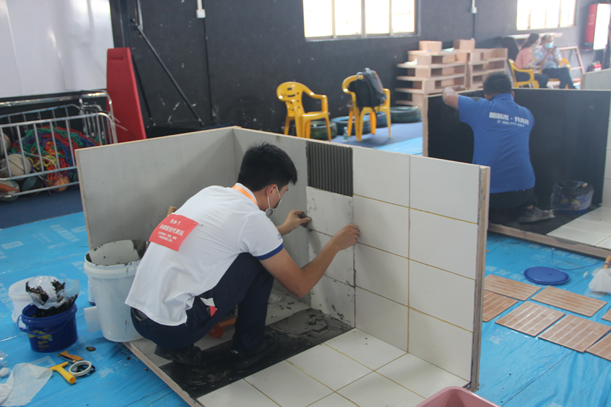 前面有一組是做衛(wèi)生間貼磚。傳統(tǒng)的認知,大家都以為防水技能工一定是農(nóng)民工,在社會地位得不到尊重。但是在這次的比賽場,有一個有趣的現(xiàn)象,選手越來越年輕化,你看還有很多是小鮮肉、小帥哥。所以說防水技能工不是沒有技術含量的普通的農(nóng)民工,而是有技術含量,可以受到社會認可的。包括今天的這次比賽,也是全國人社廳認可的,如果成績優(yōu)異的選手,都會獲頒發(fā)證書的。所以說,我們的選手越來越年輕化,不用擔心青黃不接的問題。