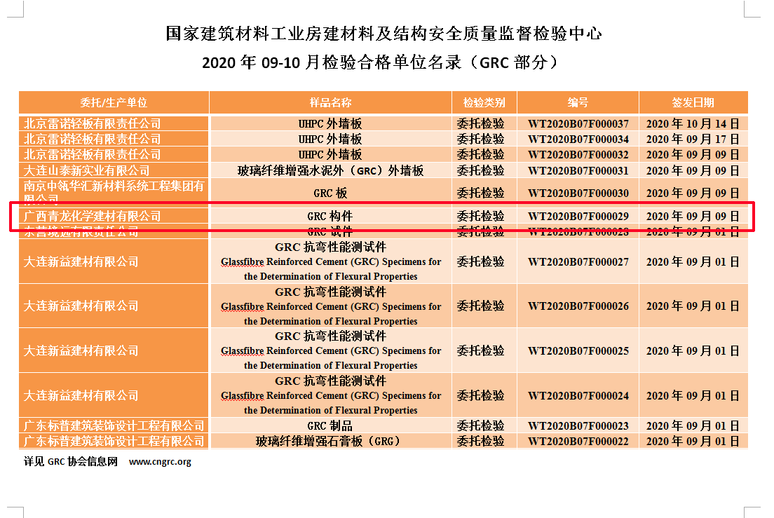 此次我司GRC構件成功通過國家質量監督檢驗中心檢測,是業界及國家對我司技術、管理、質量提升與創新的充分肯定;青龍產品質量是杠杠滴!23年的老品牌,放心的好品牌!