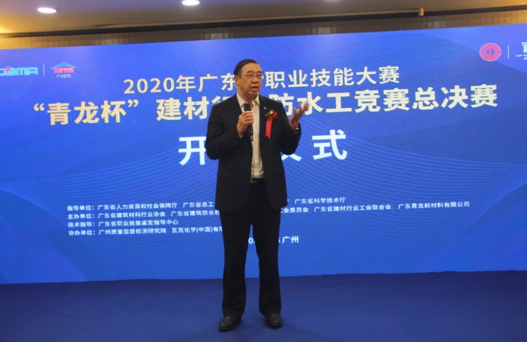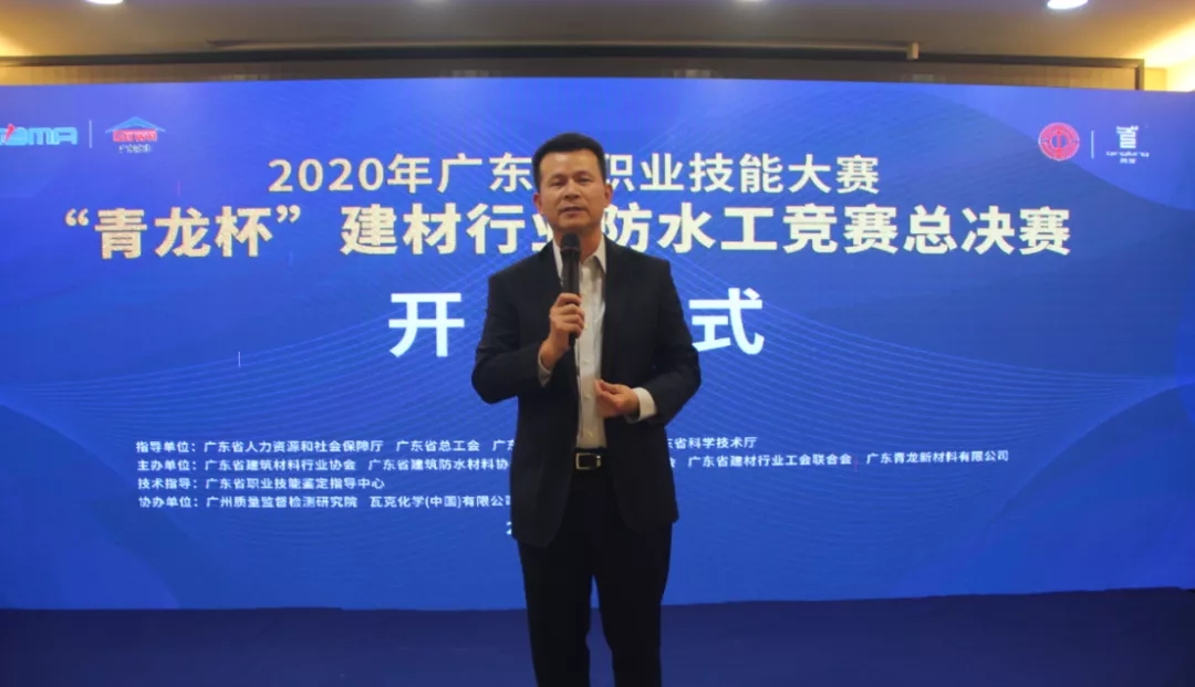 作為主辦方之一的青龍宋敦清董事長致辭表示,青龍公司非常重視防水施工技能水平的提升,已經連續舉辦了多次類似的、具有全國影響力的"青龍杯"防水工職業技能大賽,對防水從業者技能水平的提升大有裨益。本次大賽是被列入廣東省職業技能大賽的省級賽事,青龍公司非常的重視。他還指出,防水行業是個好行業,防水施工也是一個好職業,青龍公司將以防水施工技能水平提升為抓手,保障和提高防水工程質量,打造具有核心競爭力的防水系統服務商,讓更多的防水人受益。