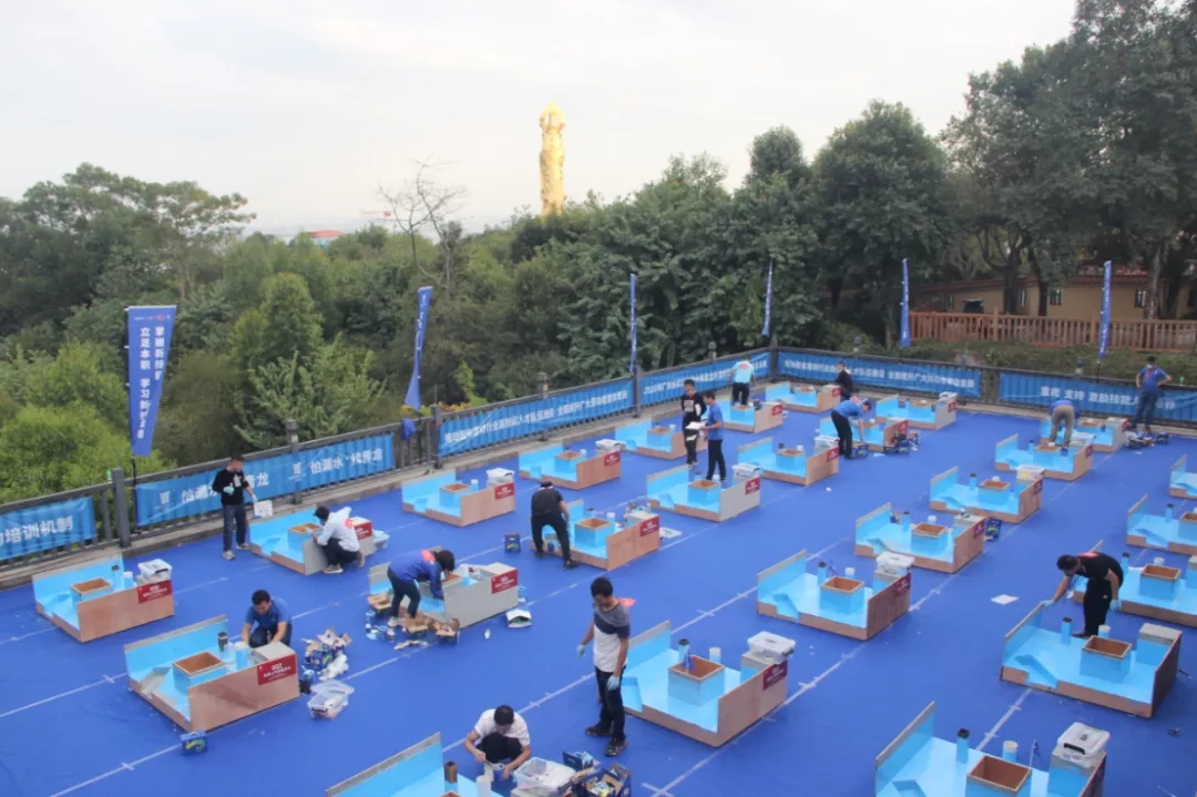 實操比賽分為衛生間防水、美縫、免砸磚補漏,金屬坡屋面和伸縮縫防水,平屋面防水三個項目。每個項目的參賽選手個個精神煥發,技術熟練,在風景優美的蓮花山比拼,也自成一道亮麗的風景線,相得益彰,更吸引了大量游客圍觀,駐足觀摩。