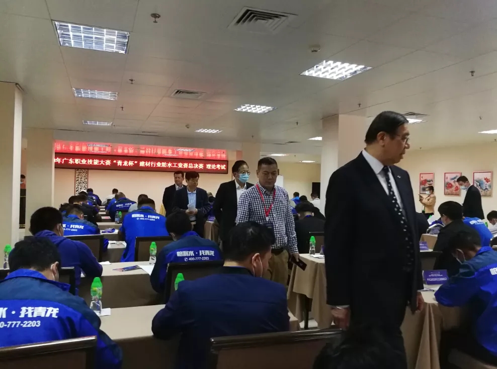 比賽過程中,廣東省建筑材料行業協會副秘書長、廣東省建材行業工會聯合會副主席王衛國,中國建筑防水協會秘書長朱冬青,中國建筑防水協會副會長、深圳市防水行業協會會長瞿培華,廣東省建筑材料行業協會常務副會長陳環,廣東省建筑防水材料協會會長張泳東,廣東省建筑材料行業協會創會會長、首席專家、高級工程師吳一岳,廣東青龍新材料有限公司董事長宋敦清、蘇州非礦院防水材料設計研究所所長沈春林教授等領導蒞臨比賽現場視察指導。朱秘書長希望青龍在弘揚工匠精神方面要為行業作表率,成為防水企業在防水補漏領域人才培育的標桿。王副主席表示此次無論是理論考試還是模型實操,都非常的有水準,標準化程度較高,為以后的類似比賽進行豎立了榜樣。