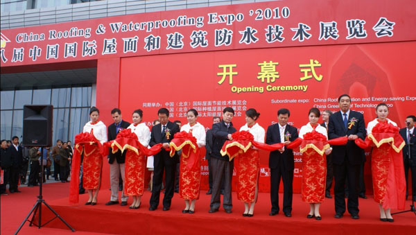 10月20日上午,第八屆中國國際屋面和建筑防水技術展覽會在北京·國際會議中心拉開帷幕。開幕式由中國建筑防水協會秘書長苗燕主持,中國建筑防水協會理事長朱冬青致開幕詞,住房和城鄉建設部節能與科技司司長陳宜明先生、中國建材聯合會常務副會長孫向遠先生、中國建材集團有限公司副總經理郭朝民、美國屋面工程協會常務副主席保羅·阿帕斯特羅先生、中國建筑防水協會理事長朱冬青為展會剪彩。