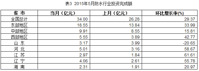5月份,防水行業投資完成額34.00億元,同比增長29.37%。