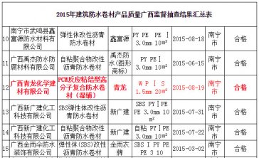 廣西質監局公布2015年建筑防水卷材抽檢公告,青龍防水卷材合格達標