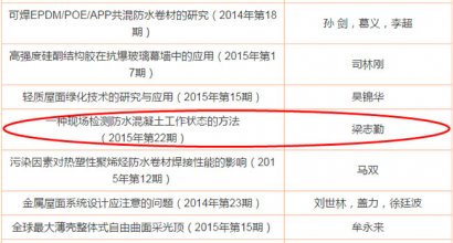 青龍公司梁志勤先生榮獲《中國建筑防水》優秀論文入圍獎