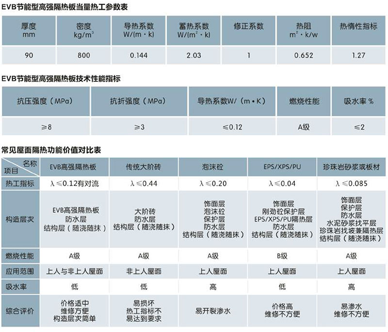 如果您有任何商品疑問,請撥打400-777-2203,有專人為您解答!EVB節能型高強隔熱板是由廣西青龍化學建材有限公司為響應國家節能減排政策用于解決屋面隔熱問題而專門研發的產品,其專利號為(Z200920052358.3)。它是由飾面層、隔熱層、承重層構成。